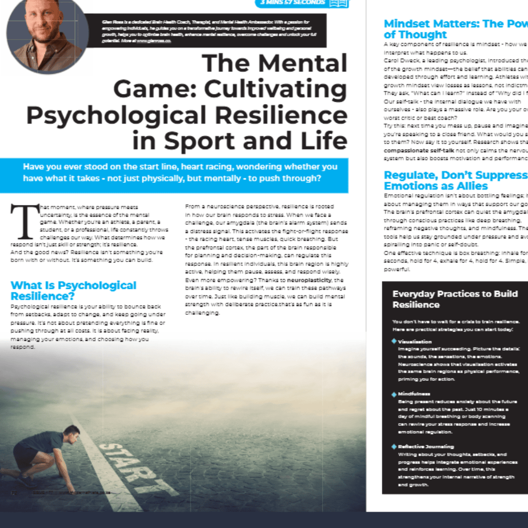 I contribute monthly to the "Live Well" section of Modern Athlete Magazine, sharing accessible, neuroscience-informed strategies to help readers optimise brain health, manage stress, and live with purpose